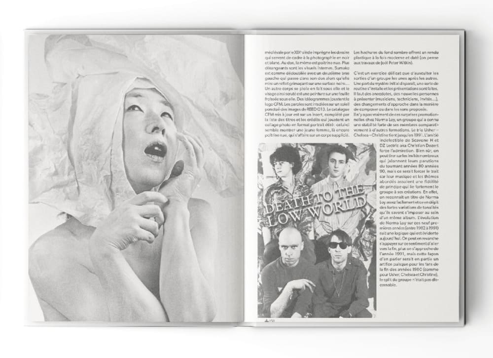 Acte II : dans la foulée du concert paraîtra un ouvrage de toute beauté, mitonné par notre contributeur historique Sylvaïn Nicolino : Norma Loy | Dark Side - Une Autre Histoire de l'Underground. Sylvaïn y a mis ses lettres et toute sa passion pour le groupe, avec le soutien de Xavier Belrose (Le Boulon) et Dom Franceschi (Cultures Obliques / Camion Blanc / Publications du Crépuscule). Avec le concours de l'éditeur très très rock Le Boulon, Sylvaïn sort un livre qui retrace l'histoire et part à la rencontre de cette création. 480 pages (!) riches en images, qui a impliqué les protagonistes principaux. Un verbe d'étude autant que d'attachement, un ouvrage de profonde valeur documentaire. Des rencontres, échanges et conférences liés au livre sont annoncés par Norma Loy et se dérouleront sur un temps étalé. Une dédicace est d'ores et déjà prévue à Hors-Circuits (rue de Nemours, Paris) le 8 novembre. Regardez plutôt ci-dessous, en attendant : la couverture, et deux pages intérieures. Et ce n'est qu'une infime, infime portion de ce qui vous attend. Vous n'imaginez même pas.