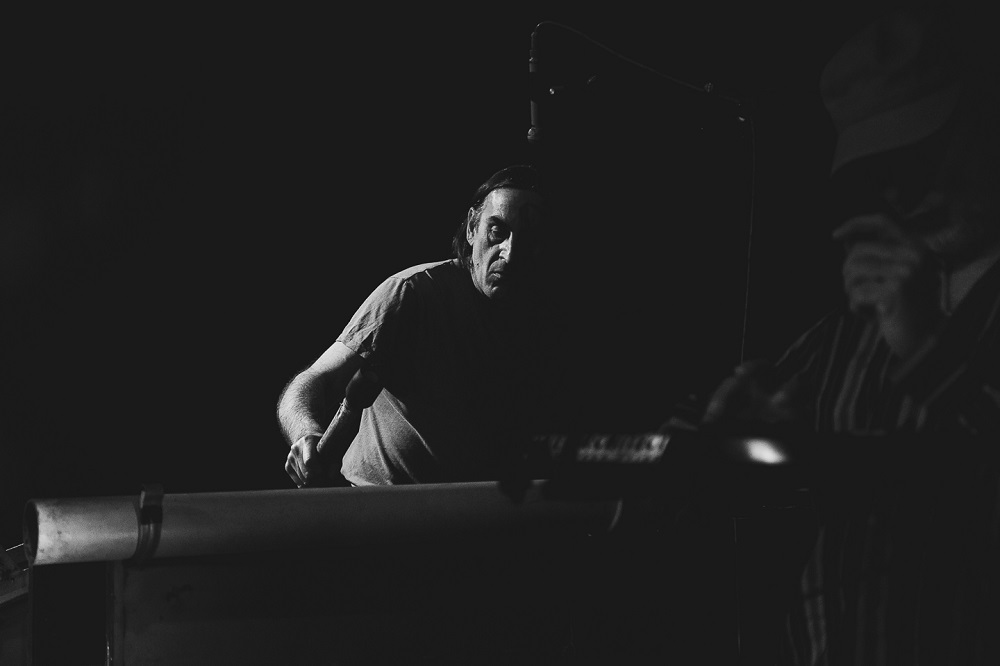 À l’instar de nombreux groupes assimilés aux musiques industrielles, ambiantes et expérimentales, tels que la figure de proue Einstürzende Neubauten ou encore Test Dept, vous utilisez des percussions fabriquées à partir d’un système d'aération d’immeuble ou d’un réservoir de camion. Est-ce du matériau de récupération et est-ce vous qui fabriquez ces instruments ?Le réservoir de camion, il date de la première époque. Malheureusement il a disparu, et on le regrette vraiment car il était indestructible, avec un super son ! Quand TAOED s’est relancé en 2023, nous avons récupéré un ancien système de ventilation de four à porcelaine, des sortes de guide d’ondes mais très basse fréquence. Nous avons complété l’ensemble par de la tuyauterie, quelques extincteurs et tôles diverses, ça nous fait une base suffisante pour le moment… C’est toujours perfectible, de futures percussions à identifier chez les ferrailleurs ou en train de rouiller à la campagne – mais bon, quand ça sonne bien c’est aussi souvent intransportable ! Dans le groupe, on a quelques bricoleurs pour travailler l’acier donc oui, on fabrique !