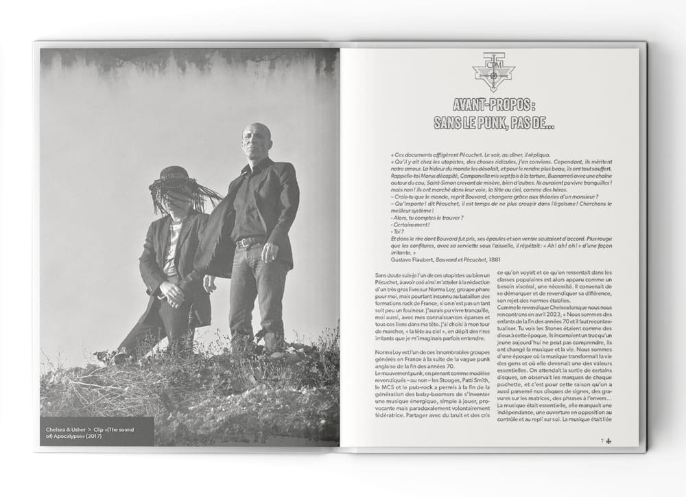 Merci pour le rappel. C'est effectivement une biographie ouverte. J'ajoute aussi les citations littéraires que je place en tête de chapitre, et les deux invitations adressées à Vincent Fallacara de Torso / Lüderitz et à Stéphane Maxime (Les Modules Etranges, Pagan Ring). Pour moi, c'était facile. Je savais que ce serait pour des lecteurs et que, quand on lit, on a besoin de repères chronologiques. Sauf que, avec tous ces projets, ce serait impossible à tenir car la simultanéité ne se marie pas avec l'écriture. On peut diviser un écran en quatre cases pour voir en même temps ce qui se joue à différents endroits. Pas pour un livre. Il y aurait donc du chronologique et, une fois mon lecteur ou ma lectrice armé(e), des chapitres thématiques, analytiques. L'idée des chapitres, c'est la respiration. C'est le temps d'un album. C'est le fragment qui existe dans l'ensemble. On peut lire le livre par morceaux, en commençant n'importe où. J'ai un proche qui fait ça en ce moment, mais parce que la musique l'intéresse peu. Je voulais ouvrir sur le contexte : parce que je suis un intellectuel et eux aussi, parce que je m'adresse à plein de gens différents dont certains qui n'ont pas cette culture ou ce regard, parce que notre histoire est déjà vieille et qu'il faut la fixer. Tout est lié, et suivre Norma Loy, c'est suivre cette Histoire, d'où le sous-titre "une autre histoire de l'underground". Quelque part, j'espère que ça évite le côté "niche" : on peut lire NORMA LOY sans connaître Norma Loy ; le duo représente un peu un cas d'espèce. C'est pas un groupe punk ou gothique ou alternatif. C'est un machin qui virevolte dans des milieux divers et qui n'a cessé de bouger. C'est mutant. Alors le livre devait lui aussi bouger, mais sans tanguer.